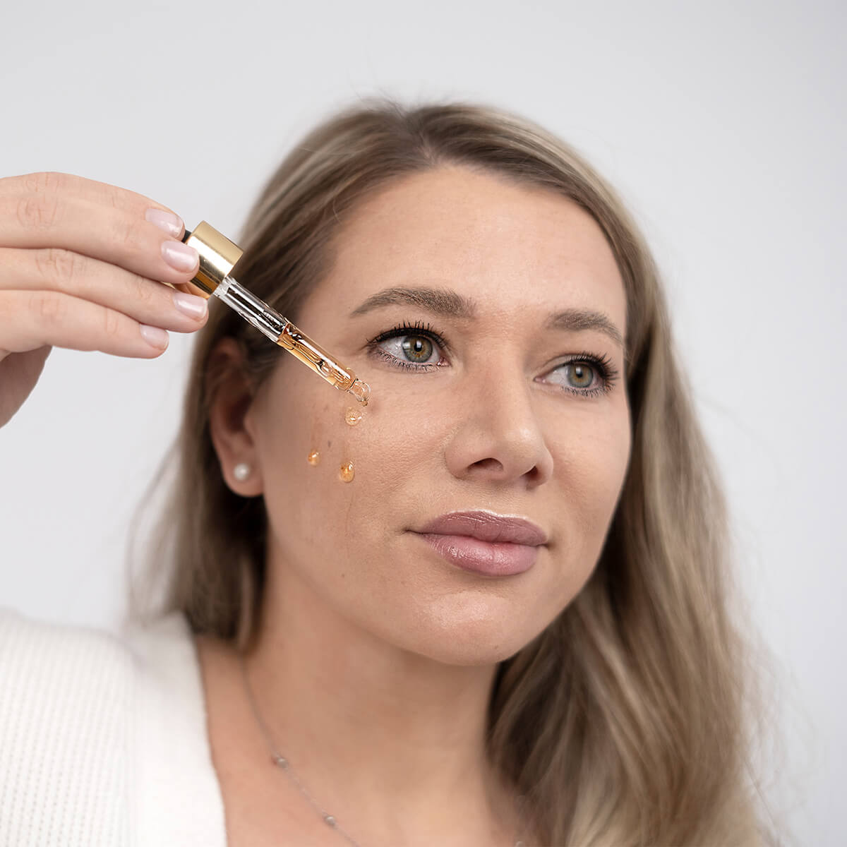 Τρόπος χρήσης: Χρησιμοποιήστε το μετά τον καθαρισμό και την τόνωση. Εφαρμόστε μια μικρή ποσότητα ορού (2-3 αντλίες στο δοσομετρητή) στην παλάμη του χεριού σας, απλώστε το στο πρόσωπο με ελαφρές κινήσεις χτυπήματος.