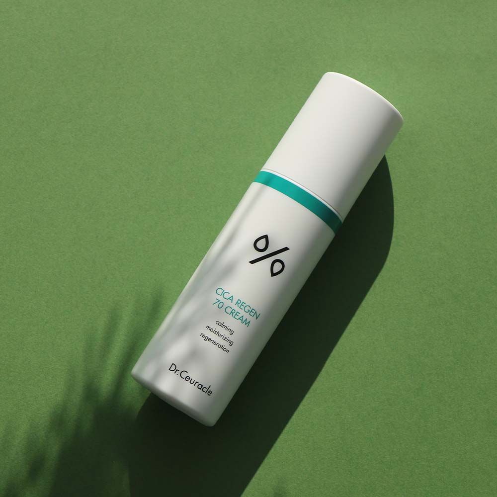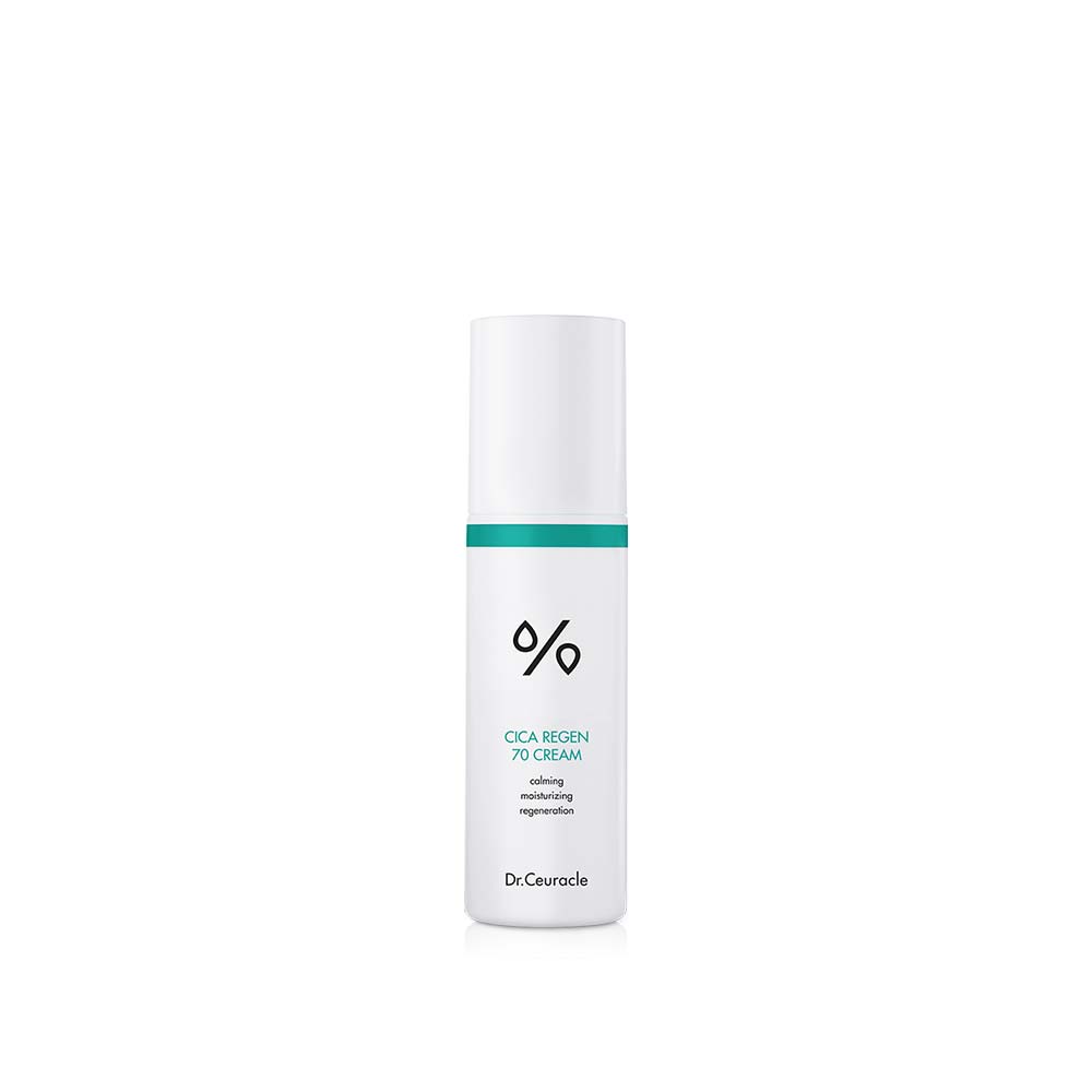 Η αναζωογονητική κρέμα Dr.Ceuracle Cica Regen 70 Cream αποτελείται από 70% εκχύλισμα centella, το οποίο παρέχει στο δέρμα την απαραίτητη θρέψη και ενυδάτωση. Η κρέμα έχει ελαφριά υφή, απορροφάται γρήγορα και δεν αφήνει κολλώδη αίσθηση.